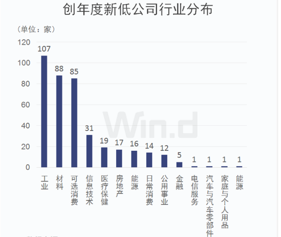 Wind統(tǒng)計顯示,有395家公司近3日最低股價創(chuàng)今年以來新低。從相關公司行業(yè)分布來看,工業(yè)最多,有107家,材料和可選消費均有超過80家??梢?,雖然股指整體上漲,但傳統(tǒng)工業(yè)、材料領域投資者普遍不太看好。