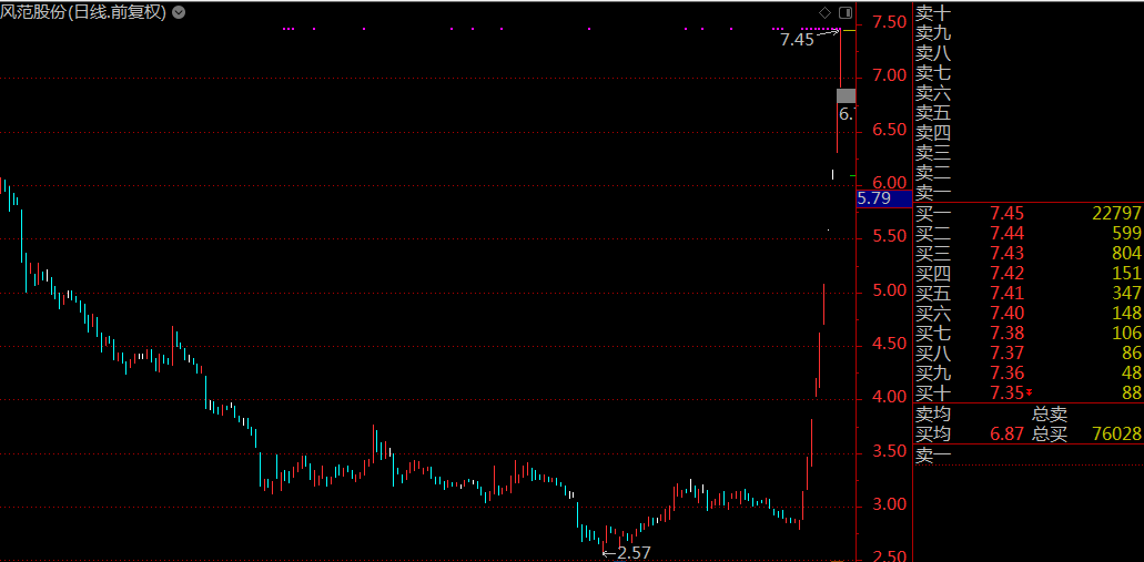 風范股份自去年12月26日以來已連續(xù)獲得10個漲停,股價一路飆升至7.45元,成為A股新妖王。