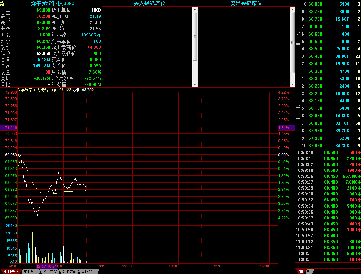 花旗發(fā)表報告表示,預(yù)計舜宇光學(xué)(02382)股價于未來30天將會下跌,因同業(yè)大立光(03008.TW)公布11月營收按月下滑23%(同比下跌29%)的疲弱數(shù)據(jù)所拖累,認(rèn)為內(nèi)地智能手機客戶對手機鏡頭需求放緩。