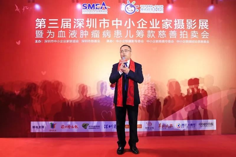 深圳中小企聯(lián)會長、銀盛集團董事局主席林重成在開幕式上表示“攝影專委會是深圳市中小企業(yè)家聯(lián)誼會旗下成立的八大專委會之一,自2011年成立以來,特別是在劉徽主席的帶領(lǐng)下,開展了豐富多彩的攝影創(chuàng)作活動,創(chuàng)作了許許多多優(yōu)秀的攝影作品,摘獲了不少大獎。他希望中小企業(yè)家既要豐富我們的精神世界,也要積極的履行企業(yè)家的社會責(zé)任,讓優(yōu)秀的攝影作品為我們的精神和心靈帶來震撼,也要讓這種震撼轉(zhuǎn)換化對血液病患兒的關(guān)愛,轉(zhuǎn)化為對慈善事業(yè)的支持和關(guān)心。