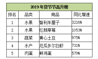 7.智利車厘子銷量同比增長32倍,消費升級產(chǎn)品增速最快,黃心土豆意外成為“樸素系”黑馬。