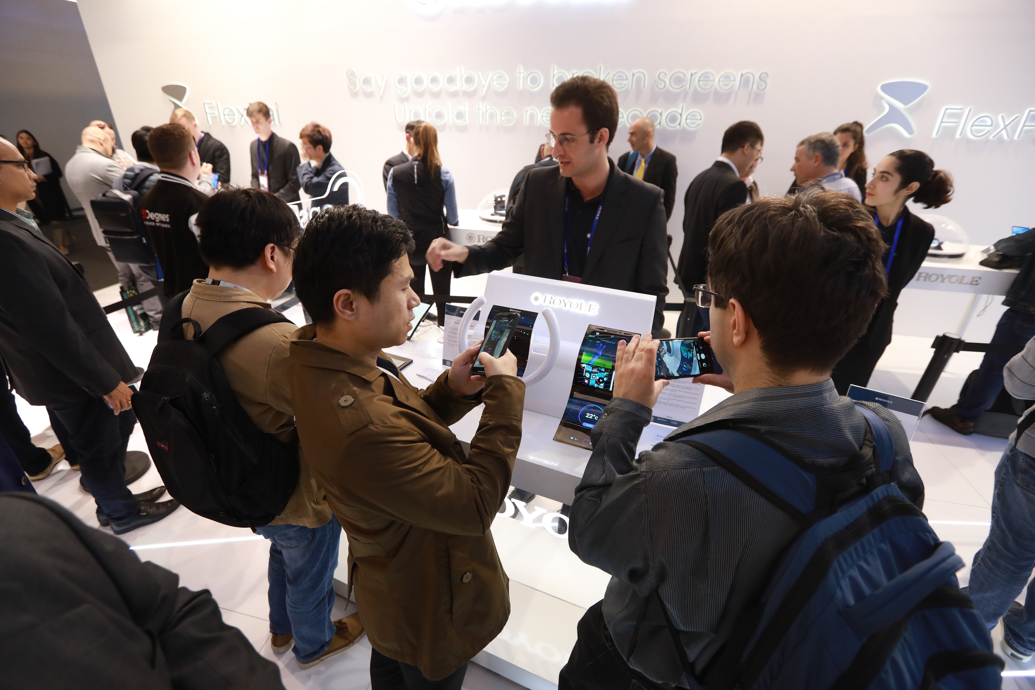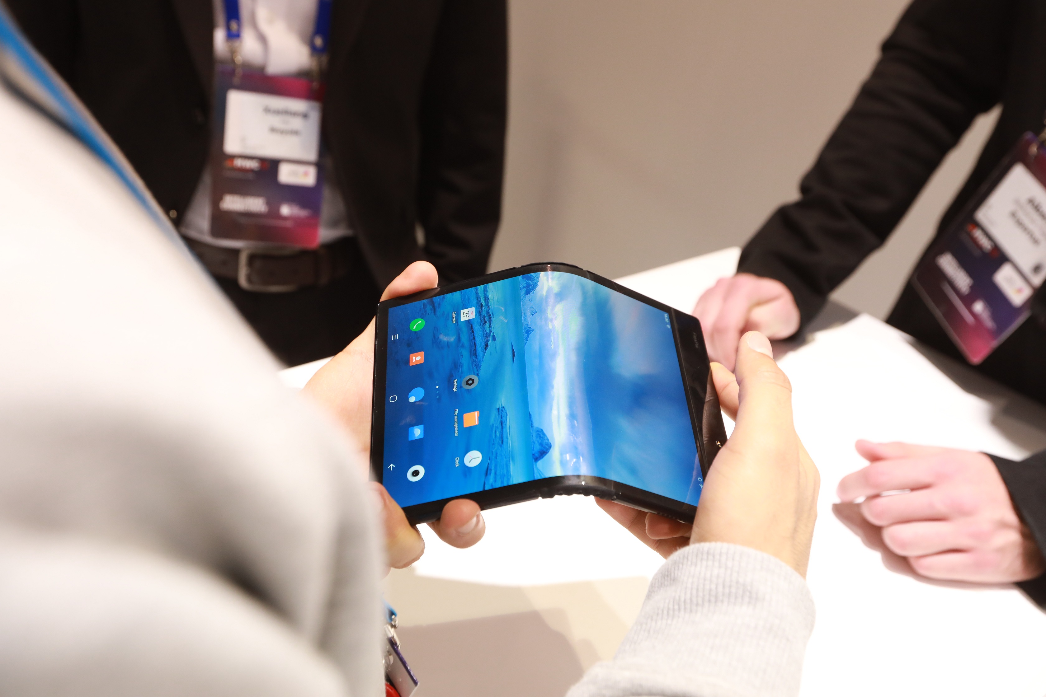 折疊屏手機(jī)作為今年MWC的熱點(diǎn)之一。柔宇科技現(xiàn)場(chǎng)展出一大批全球首款可折疊柔性屏手機(jī)FlexPai柔派,沒(méi)有玻璃柜緊鎖,沒(méi)有高大安保人員嚴(yán)密看管,參展客戶可在柔宇展位隨意上手體驗(yàn)折疊屏手機(jī)柔派的多種功能,多次折疊、鏡像拍照、大屏游戲等等均可自由嘗試。