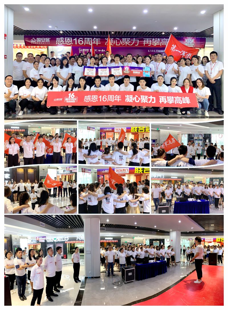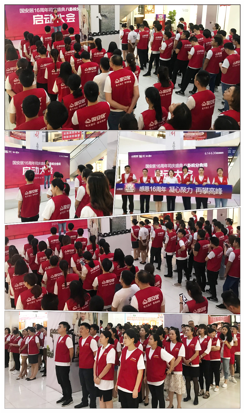 6月13日-14日,國(guó)安居“16周年司慶”啟動(dòng)大會(huì)在國(guó)安居深惠門店火熱舉行,800家品牌商家的銷售精英、員工代表、熱心市民等近萬(wàn)余人共同見證了這一意義非凡的時(shí)刻。參與者身著統(tǒng)一服裝,早早就聚集在商場(chǎng)中庭,所有人都把笑容掛在臉上,展現(xiàn)出自己最陽(yáng)光、最開心、最具活力的一面。