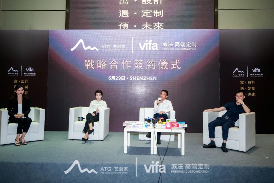6月29日下午,ATG·藝澍家 & vifa威法戰(zhàn)略合作簽約儀式在紅星美凱龍深圳香蜜湖商場舉行,vifa威法董事長楊煉、總經(jīng)理王超及威法高端定制核心區(qū)域代理商們悉數(shù)到場,與ATG·藝澍家CEO張富麗、來自ATG亞太國際的設計師團隊等就跨界合作議題展開深入的交流溝通?,F(xiàn)場火花碰撞,在高端家裝市場領域深耕多年的雙方領導分享了對“高奢住宅定制”的理解,坦言行業(yè)痛點,剖析行業(yè)趨勢,并就當前高奢定制市場發(fā)展的現(xiàn)狀以及問題展開全面探討。