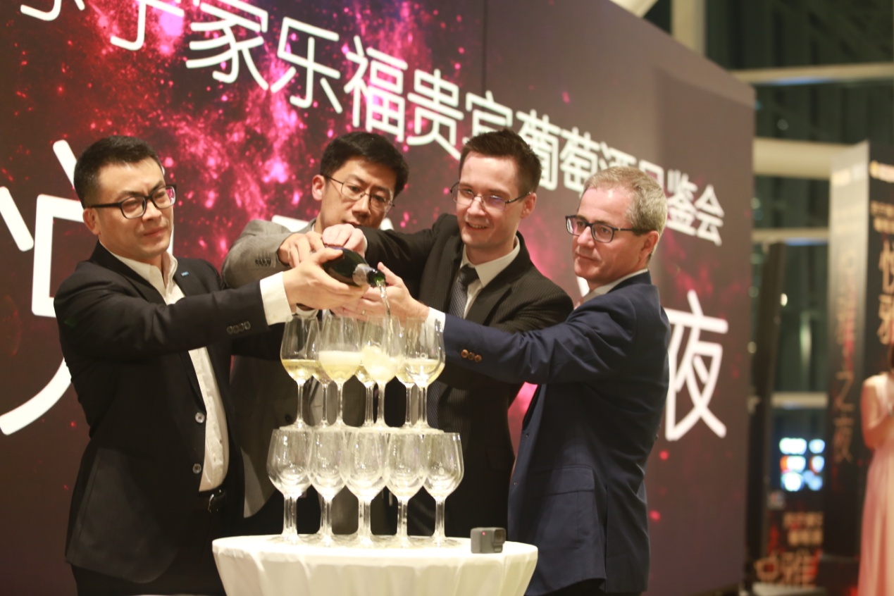 當天,家樂福中國區(qū)副總裁、華南區(qū)總裁薛鵬,蘇寧易購華南區(qū)執(zhí)行副總裁、深圳大區(qū)總經(jīng)理戴馮軍,家樂福中國區(qū)商品副總裁馬邱(Matthieu HOUSSAIS),杭州鼎世總裁樂安華(Erwann LEMOIGNE)出席了活動并致辭?,F(xiàn)場展出的100多種葡萄酒,大部分來自于法國,價格從幾十元至幾萬元,滿足不同層次的消費需求。