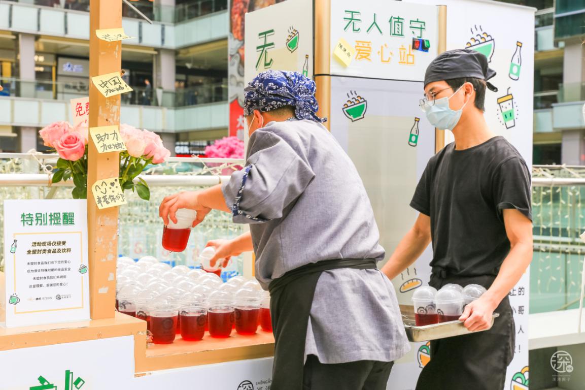 3月3日至3月8日卓悅INTOWN在街頭專設了一個”無人值守愛心站”,用愛心餐車上放滿了食物冷/熱飲,專門免費贈送給快遞、外賣小哥、環(huán)衛(wèi)工人、警察、城管等一線奔波的人員。