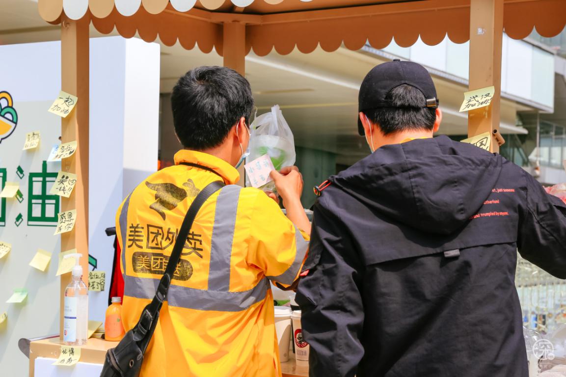 中午送餐高峰期結束后,周邊上班的愛心市民得知這個活動后,也不斷來悄悄“補貨”。有的在便利店打包了烏冬面放在愛心餐車上;有的遠程購買了薯條、水果茶并留下了貼心備注;還有的市民陸續(xù)帶著“奇奇怪怪”的物品放在無人值守愛心站,在這里感受到了深圳這座城市的溫暖。