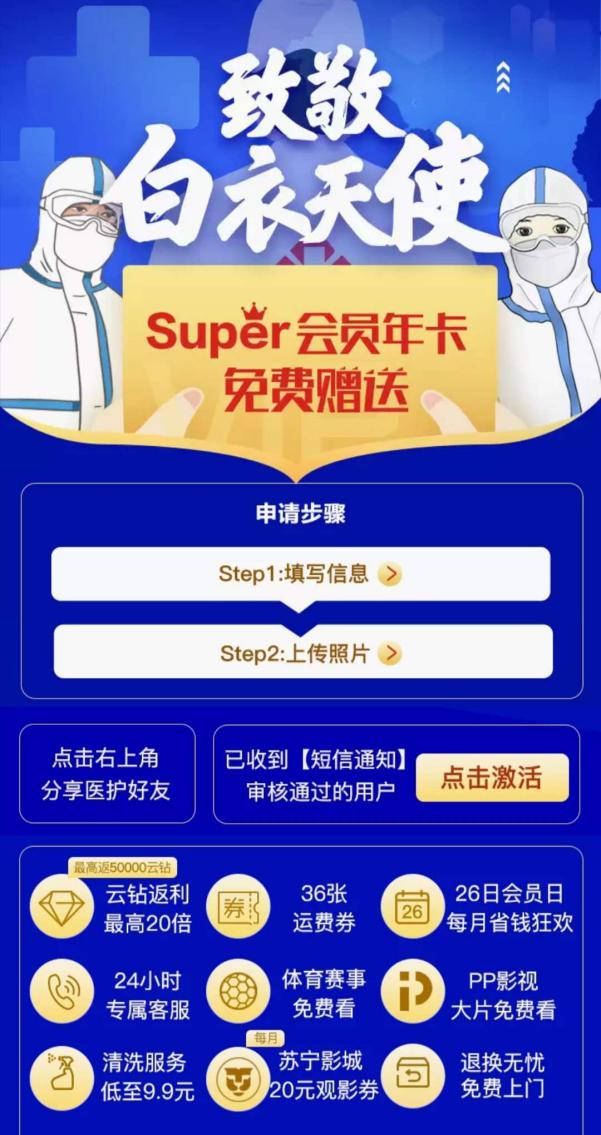 致敬白衣天使蘇寧送Super會(huì)員申請(qǐng)人數(shù)日均增長(zhǎng)59%