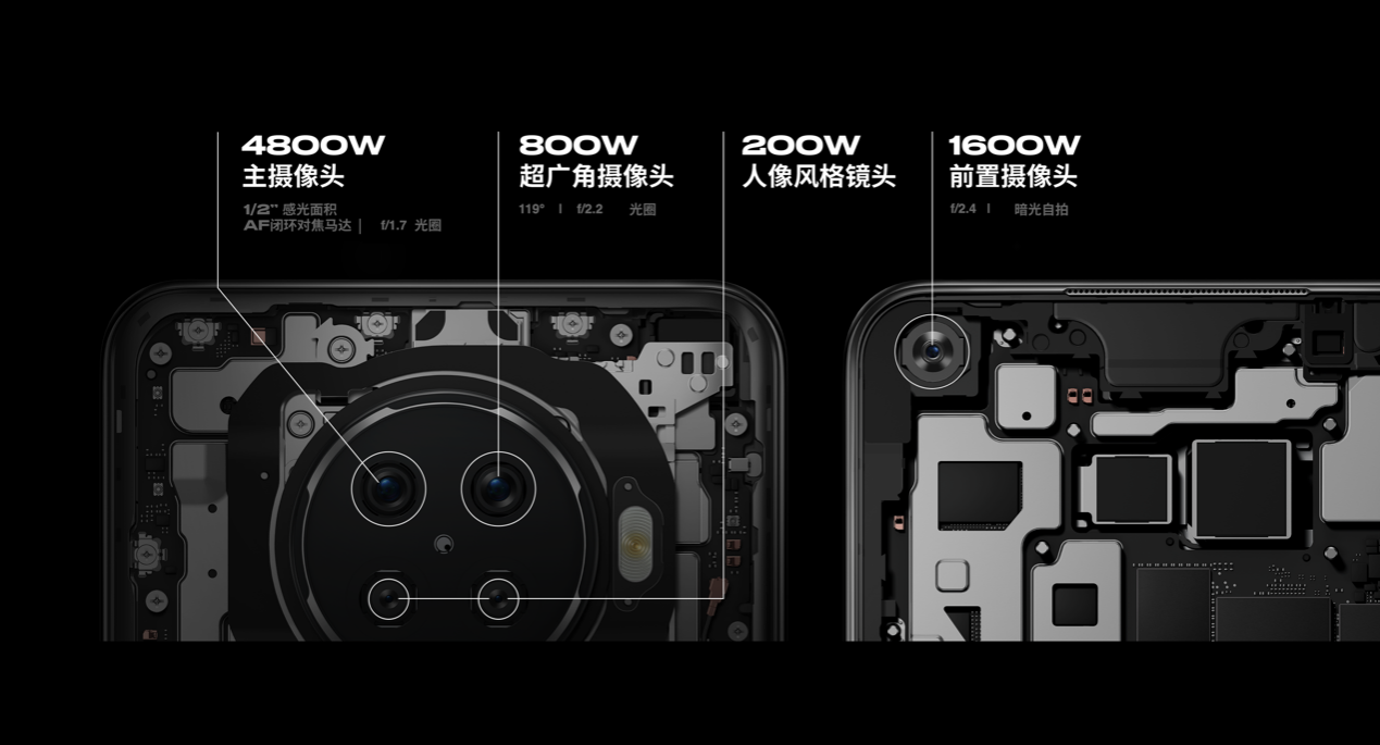 OPPO Ace2搭載了高清四攝影像系統(tǒng),分別為4800W超清主攝、800W超廣角鏡頭以及復(fù)古肖像風(fēng)格與漏光人像風(fēng)格鏡頭。4800W主攝可以通過超分辨率算法合成分辨率12032×9024的「億級像素」照片,1600W前置攝像頭支持超清夜景。在視頻拍攝方面,OPPO Ace2支持超清視頻防抖、超廣角視頻和智能視頻剪輯。