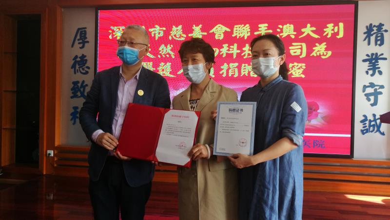 深圳市康寧醫(yī)院黨委書記王建紅,深圳市慈善會副秘書長董昕,澳大利亞天然生物科技公司駐中國辦事處代表全波,深圳市康寧醫(yī)院黨委委員、黨辦主任工會副主席陳靜,深圳市康寧醫(yī)院工會女工委主任劉雪琴,深圳市慈善會社會幫扶部部長肖志輝等參加捐贈儀式。