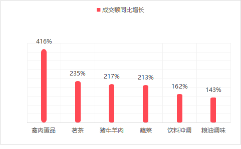 借助“五一”小長假及線上消費增長的勢頭,各地的線上扶貧特產(chǎn)館成交額同比增長了135%。各產(chǎn)地的糧油調(diào)味、禽肉蛋品、水果、蔬菜及海鮮水產(chǎn)等特產(chǎn)的成交額最高。