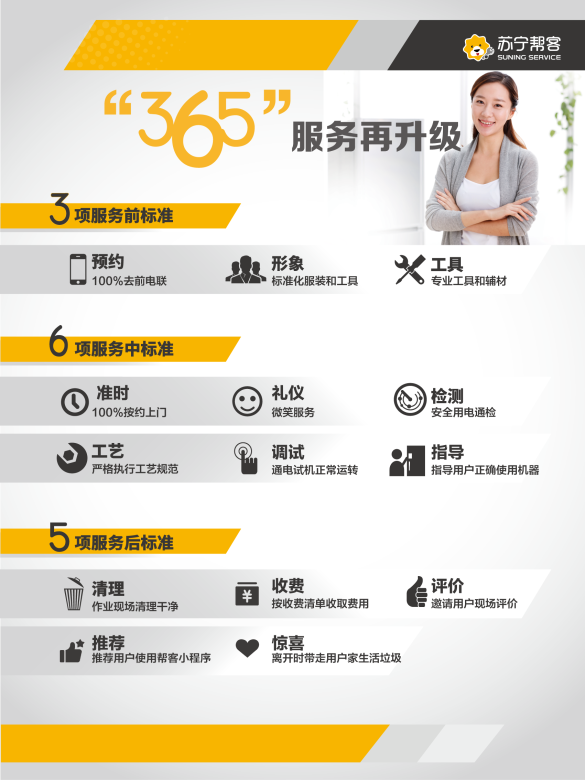 在用戶關心的收費問題上,蘇寧幫客服務推行明碼標價、合理化收費。針對行業(yè)亂象,為了保障廣大用戶家電售后服務體驗,蘇寧幫客承諾家電安裝維修“多收費,雙倍賠”。各品類家電安裝維修中,經(jīng)核實屬于多收費的部分,雙倍賠償。蘇寧幫客在蘇寧易購網(wǎng)站上對詳細價格表進行公示,工程師也會隨身攜帶價格表,廣大消費者隨時可查詢。