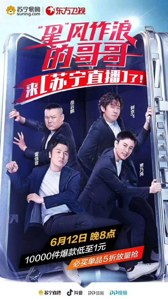 蘇寧將在6月12日晚8點(diǎn)開(kāi)啟以“星”風(fēng)作浪的哥哥為主題的直播活動(dòng),共計(jì)3個(gè)小時(shí)。正所謂娛樂(lè)購(gòu)物兩不誤,極限挑戰(zhàn)將陣容搬到了直播間,4位明星搭檔主持,帶領(lǐng)用戶感受全方位的品質(zhì)化購(gòu)物,煥新精彩生活。