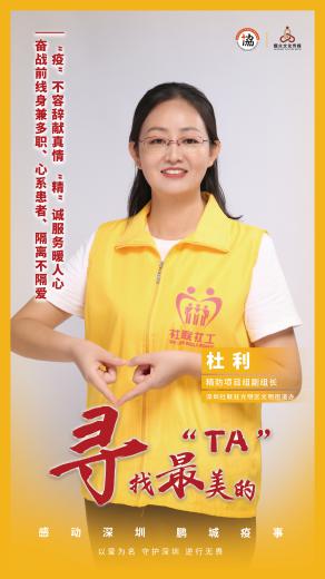 深圳社聯(lián)派駐光明區(qū)光明街道精防社工杜利,在一線戰(zhàn)疫中身兼多職、心系患者、隔離不隔愛。她不僅在深圳新冠肺炎確診數(shù)直線上升的敏感期,挺身而出主動為康復者親赴醫(yī)院領藥并送“愛”上門;白天更是積極開展社區(qū)巡查,幫助服務對象積極面對疫情;晚上再與防疫人員輪班值守、外出巡防,督促商戶們做好防護工作。