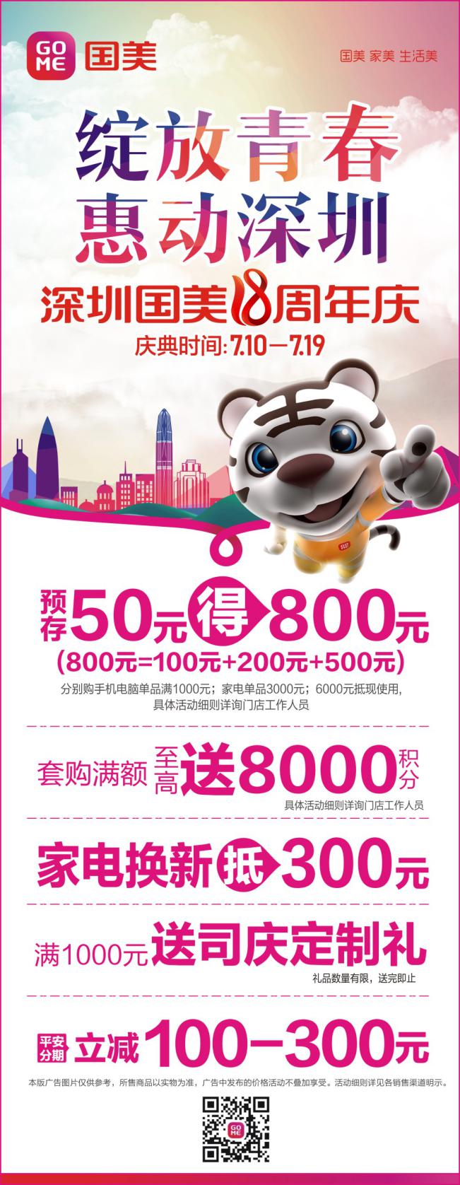 時(shí)間是最好的見(jiàn)證者,萬(wàn)分榮幸我們和辛勤的深圳建設(shè)者一起見(jiàn)證了這座偉大城市的發(fā)展與變遷,深圳無(wú)疑是充滿(mǎn)創(chuàng)造力和奇跡的城市,時(shí)間就是金錢(qián),效率就是生命是這座城市的座右銘。為感謝粉絲們一直以來(lái)對(duì)國(guó)美的支持與厚愛(ài),值此18周年大慶之際,深圳國(guó)美于7月10日-19日舉辦了一場(chǎng)“綻放青春,惠動(dòng)鵬城”18周年慶活動(dòng)!