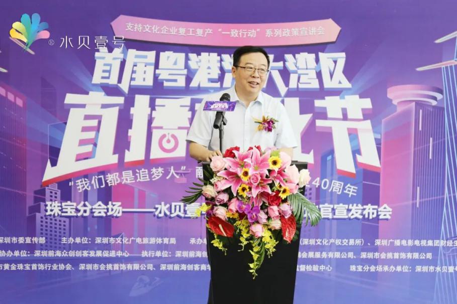 見圳客戶端·深圳新聞網(wǎng)2020年7月21日訊 昨日,支持文化企業(yè)復(fù)工復(fù)產(chǎn)“一致行動”系列政策宣講會暨粵港澳大灣區(qū)直播文化節(jié)珠寶分會場“水貝壹號品牌珠寶集聚地”官宣發(fā)布會在水貝壹號舉行,標志著首屆粵港澳大灣區(qū)直播文化節(jié)珠寶分會場“水貝壹號品牌珠寶集聚地”活動正式啟動。