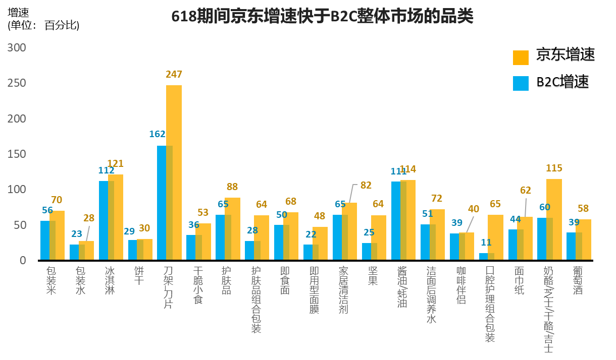 尼爾森618期間監(jiān)測的快消品類數(shù)據(jù)發(fā)現(xiàn),京東增速超過市場整體增速,從細(xì)分品類分析,618期間以食品為代表的大量民生品類在京東增速明顯超越大盤,充分展示了消費(fèi)者對于京東平臺的信賴。京東大數(shù)據(jù)則顯示在2020年上半年已經(jīng)有超過10000個品牌在京東超市實現(xiàn)成交額同比增長100%,7000個品牌實現(xiàn)成交額同比增長200%,5000個品牌實現(xiàn)成交額同比增長300%,有200個品牌實現(xiàn)成交額超億元,超20個品牌實現(xiàn)成交額超10億。