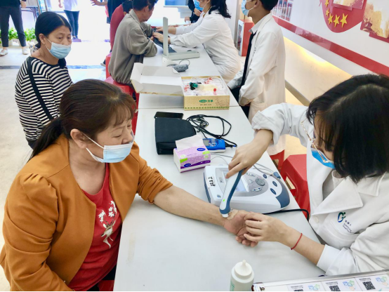 活動(dòng)現(xiàn)場(chǎng),社區(qū)居民聞?dòng)嵍?,向醫(yī)務(wù)工作人員咨詢各種保健知識(shí)和健康問題,通過測(cè)量血壓、中醫(yī)學(xué)全息四診(望、聞、問、切)等形式。