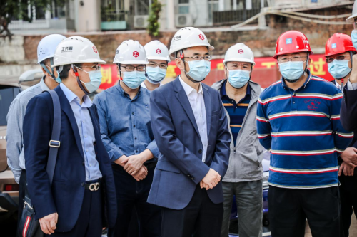李卓一行在門口測(cè)溫登記后進(jìn)入施工區(qū)域,實(shí)地調(diào)研了項(xiàng)目施工進(jìn)度,同時(shí)聽取項(xiàng)目負(fù)責(zé)人詳細(xì)介紹了項(xiàng)目春節(jié)期間施工部署等相關(guān)情況,對(duì)項(xiàng)目周密詳細(xì)的安排表示肯定。