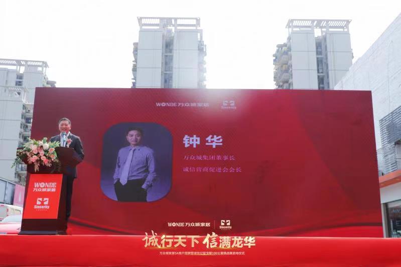 儀式上,誠商會(huì)創(chuàng)會(huì)會(huì)長、萬眾城集團(tuán)董事長鐘華致歡迎辭,他說,萬眾城集團(tuán)自2009年開始做誠信建設(shè),創(chuàng)立了“誠信基金”“誠信沙龍”“5A級誠信商戶評選”三板斧,將商戶有效投訴從十二年前的91起,商戶自覺誠信經(jīng)營,往后每年未超過5起。萬眾城既是誠信建設(shè)者,也是受益者,投訴率和理賠率逐年下降,商家營業(yè)額逐年上升。經(jīng)過嚴(yán)格的篩選和評審,萬眾城家居評出了2020年度5A商戶共346戶,并在當(dāng)天的儀式上給20名5A商戶代表授牌。