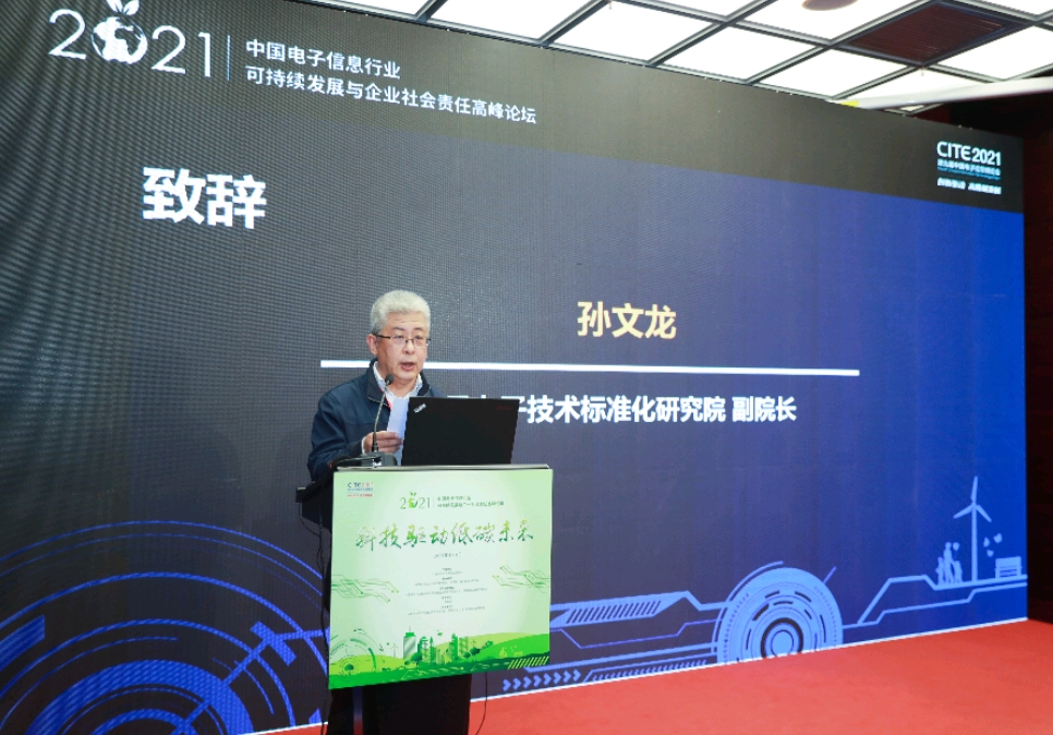 中國電子技術(shù)標(biāo)準(zhǔn)化研究院副院長孫文龍在致辭中表示,打贏“碳達(dá)峰、碳中和”這場硬仗,需要各行各業(yè)積極探索綠色低碳發(fā)展路徑,更需要各行業(yè)企業(yè)繼續(xù)秉承新發(fā)展理念,更加自覺的履行綠色減碳責(zé)任。電子信息產(chǎn)業(yè)作為我國國民經(jīng)濟(jì)戰(zhàn)略性、基礎(chǔ)性和先導(dǎo)性支柱產(chǎn)業(yè),是全球創(chuàng)新最活躍、帶動力最強(qiáng)、滲透性最廣的領(lǐng)域,不僅是綠色減碳的重要陣地,更是發(fā)揮自身強(qiáng)大科技創(chuàng)新優(yōu)勢,驅(qū)動國民經(jīng)濟(jì)綠色低碳發(fā)展,實現(xiàn)“碳達(dá)峰、碳中和”的中堅力量。希望大家以高度的責(zé)任心和使命感,積極探索、加強(qiáng)合作、充分交流、暢所欲言,為綠色低碳化發(fā)展及其科學(xué)管理探道尋途,不斷把新時代電子信息行業(yè)社會責(zé)任治理水平和生態(tài)文明建設(shè)推向新的高度。