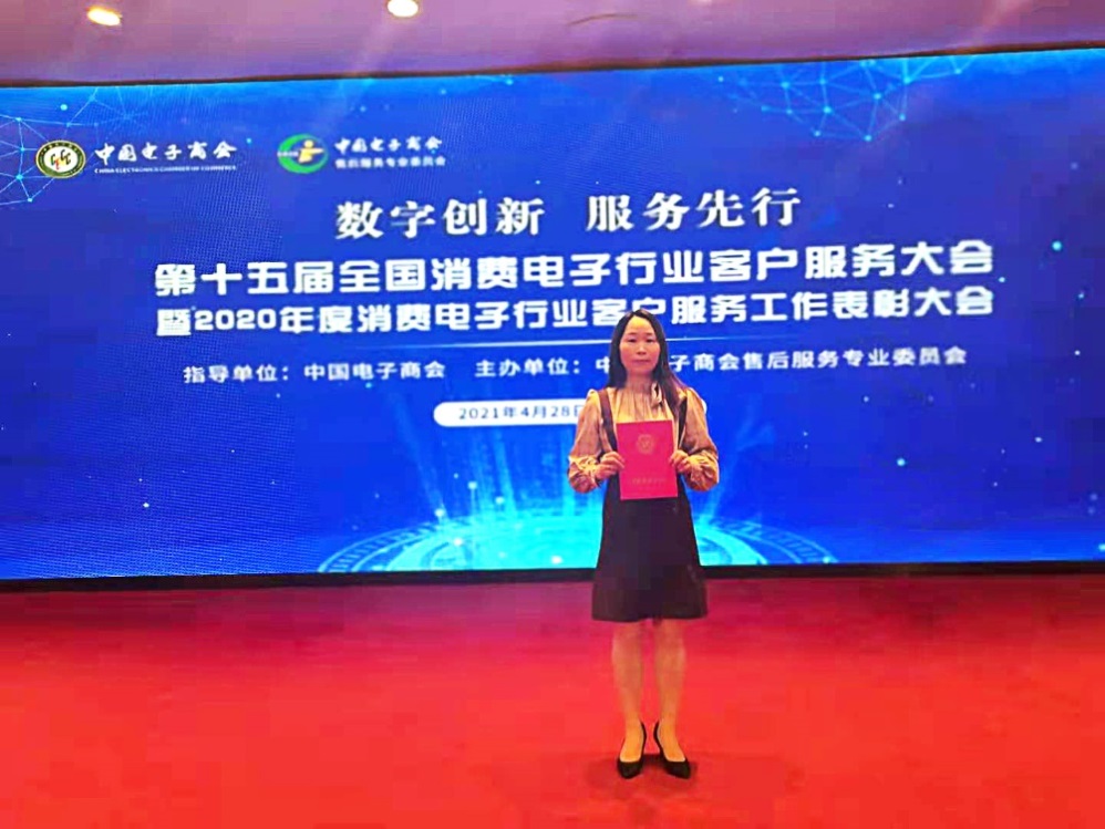 本次大會(huì)上榮獲“2020年度消費(fèi)電子行業(yè)客戶服務(wù)優(yōu)秀工作者”的錢云是國(guó)美管家全體后服務(wù)工作者的縮影,國(guó)美管家各地的服務(wù)團(tuán)隊(duì)均以專業(yè)、標(biāo)準(zhǔn)、熱情的服務(wù)得到了廣大消費(fèi)者認(rèn)可。