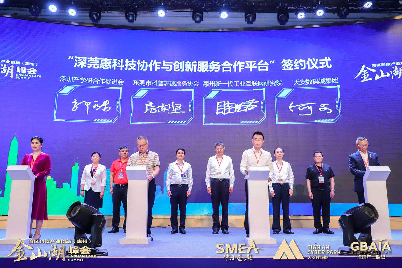 峰會(huì)當(dāng)天,在廣東省科學(xué)技術(shù)協(xié)會(huì)黨組書記鄭慶順,惠州市委常委、市政府常務(wù)副市長(zhǎng)何廣延,深圳市科學(xué)技術(shù)協(xié)會(huì)黨組書記林祥,東莞市科學(xué)技術(shù)協(xié)會(huì)一級(jí)調(diào)研員李小兵,惠州市科學(xué)技術(shù)協(xié)會(huì)黨組書記羅金星,惠州市科學(xué)技術(shù)協(xié)會(huì)主席費(fèi)霞的見(jiàn)證下,深圳產(chǎn)學(xué)研合作促進(jìn)會(huì)郭皓、東莞市科普志愿者協(xié)會(huì)房志堅(jiān)、惠州新一代工業(yè)互聯(lián)網(wǎng)創(chuàng)新研究院眭世榮、惠州市天安數(shù)碼城有限公司何文共同上臺(tái)簽約,正式開(kāi)啟深莞惠科技協(xié)作與創(chuàng)新服務(wù)新篇章。