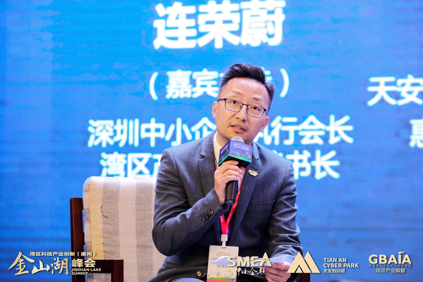 深圳中小企聯(lián)執(zhí)行會長、灣區(qū)產業(yè)聯(lián)盟秘書長連榮蔚主持論壇環(huán)節(jié)