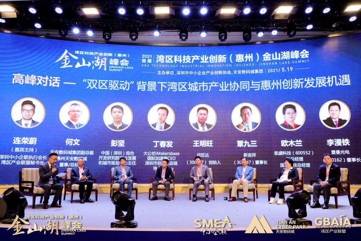 “‘雙區(qū)’建設是國家領導人和黨中央部署的重大國家戰(zhàn)略,作為粵港澳大灣區(qū)重要節(jié)點和深圳都市圈重要成員,全力支持、積極融入既是惠州鮮明的政治態(tài)度,也是惠州發(fā)展的必然抉擇。相信在惠州市及各級政府部門支持下,深圳市中小企業(yè)產業(yè)創(chuàng)新協(xié)會、天安數(shù)碼城集團強強攜手,與各方合作伙伴共同努力,通過每年一屆的“灣區(qū)產業(yè)創(chuàng)新(惠州)金山湖峰會”深入落實創(chuàng)新驅動發(fā)展戰(zhàn)略,匯聚粵港澳大灣區(qū)產業(yè)創(chuàng)新資源,深化粵港澳創(chuàng)新合作,助力惠州與灣區(qū)城市間的產業(yè)創(chuàng)新與協(xié)同發(fā)展。