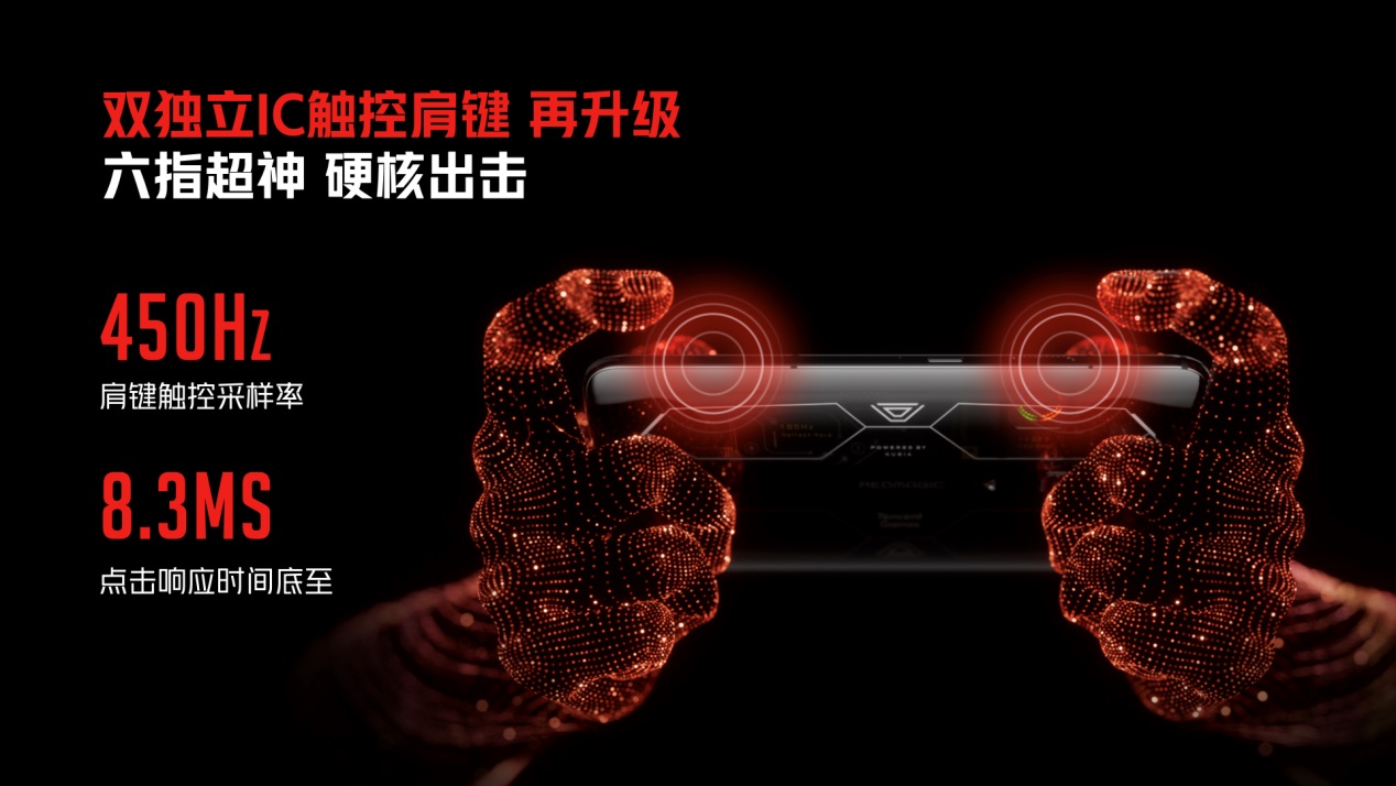 將“肩鍵”帶入手機的紅魔本次采用響應(yīng)速度最快的450Hz觸控雙肩鍵,新增500Hz觸控腰鍵,為玩家解鎖更多游戲新姿勢,全新的觸控游戲體驗拓展了手機游戲的可玩性,豐富的自定義設(shè)置和手勢讓玩家可以不同習(xí)慣進(jìn)行游戲,小白雙指即可玩出高端操作,大神六指成就極限超神。