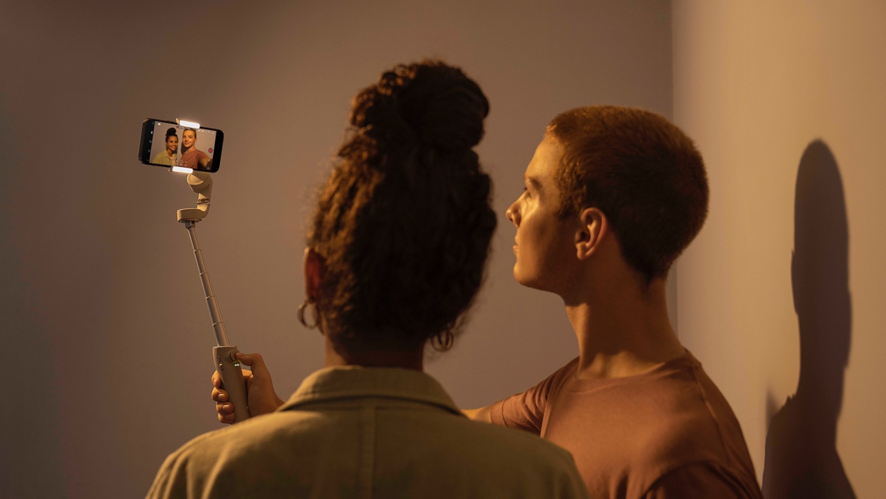 DJI OM5穩(wěn)定的硬件設(shè)計(jì)保障了用戶拍攝穩(wěn)定畫面,全新推出“拍攝指導(dǎo)”功能將為用戶提供拍攝思路、拍攝技巧和剪輯方案,讓用戶用簡(jiǎn)單輕松的方式隨時(shí)表達(dá)心中所想。在配合DJI Mimo app使用時(shí),將手機(jī)鏡頭對(duì)準(zhǔn)想要拍攝的主體或場(chǎng)景, OM5將智能識(shí)別當(dāng)下場(chǎng)景,推薦適合當(dāng)下場(chǎng)景的拍攝手法,在選擇相應(yīng)模板后OM5會(huì)智能設(shè)置好各類參數(shù)。在實(shí)際拍攝過(guò)程中, DJI Mimo界面也將展現(xiàn)第三人稱的教學(xué)畫面,用戶按照提示即可拍攝同款畫面。拍攝完成之后,“拍攝指導(dǎo)”會(huì)根據(jù)拍攝的素材智能推薦一鍵剪輯成片,讓記錄、剪輯、成片一氣呵成,從未如此簡(jiǎn)單。
