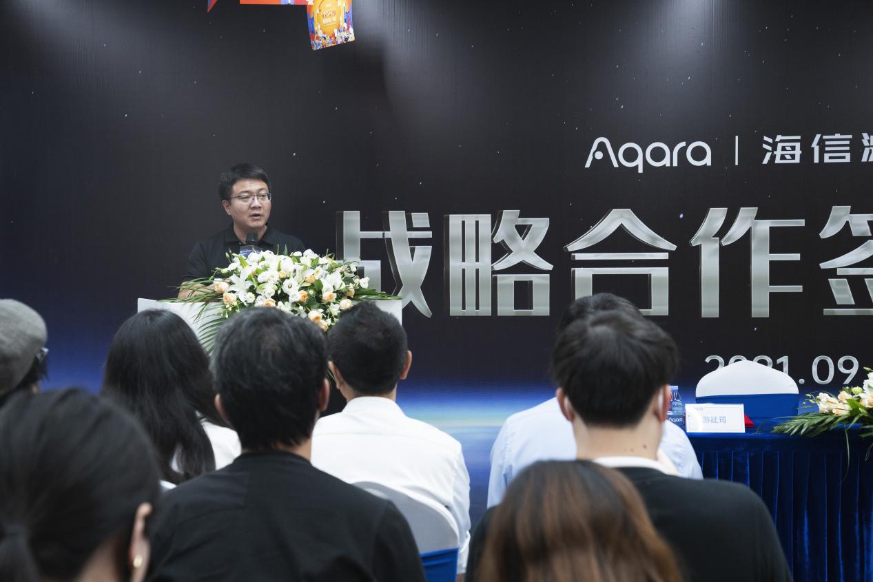 致辭環(huán)節(jié),海信集團控股公司副總裁于芝濤也發(fā)來了線上祝福視頻,表達了對這次雙方合作,共同致力全屋智能美好體驗再升級的美好祝愿。與此同時,青島海信激光顯示股份有限公司的副總經(jīng)理王偉介紹了海信電視在戰(zhàn)略發(fā)展方向上的重塑新定位、新技術(shù)應(yīng)用、產(chǎn)品優(yōu)勢以及所取得的階段性成就等,并表示Aqara作為全球智慧生活方式的先行者和引領(lǐng)者,致力于打造「千人千面」的全屋智能生活方式,要做更懂用戶的“家”,這和海信電視“顯示無處不在,服務(wù)無處不在,連接無處不在”的發(fā)展理念不謀而合。除去智能化,雙方與生俱來的“綠色基因”更加夯實了這種合作契因,并始終堅信,未來海信電視與Aqara將會不斷用綠色智能科技提升大家的家居生活品質(zhì),打造大屏?xí)r代的綠色客廳,引領(lǐng)中國IoT的發(fā)展。