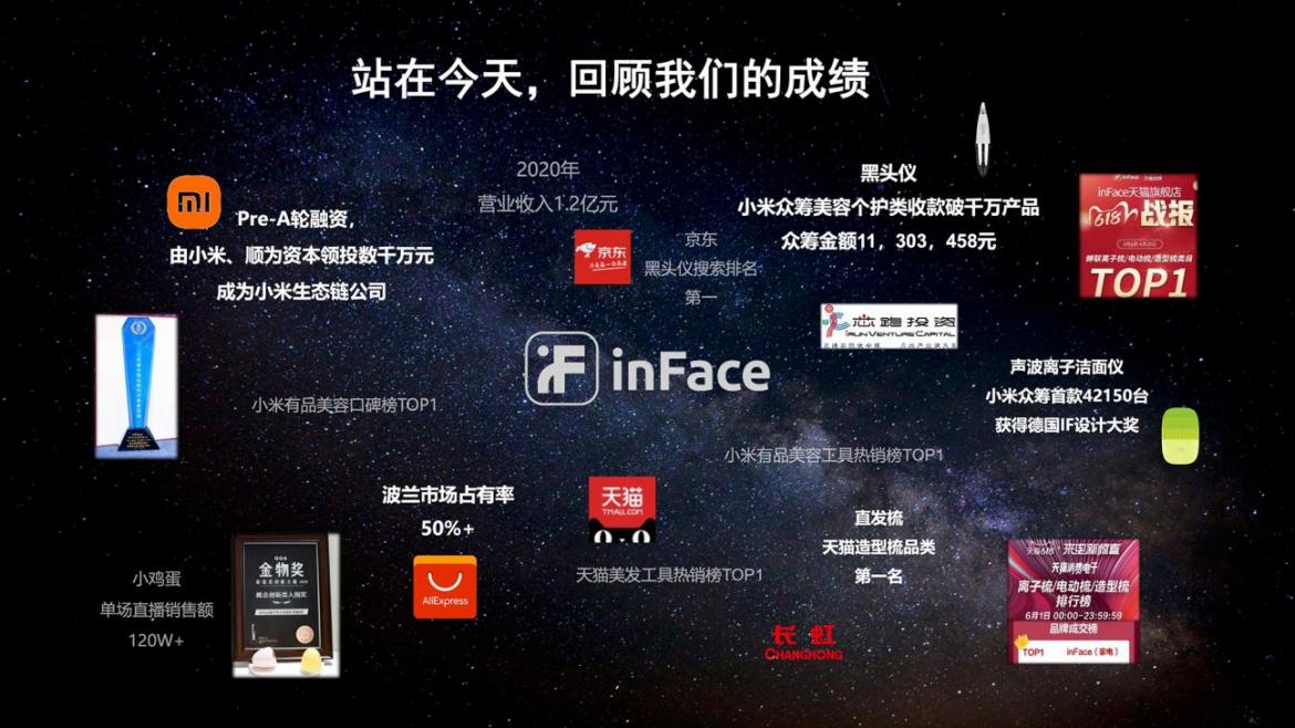 據了解, inFace創(chuàng)立于2017年6月21日,經過近1年籌備,2018-2020年完成了第一個“三年計劃”,即實現(xiàn)成為行業(yè)有代表和開創(chuàng)性“產品型公司”的戰(zhàn)略目標。在這期間,inFace發(fā)布原創(chuàng)產品12款+,年營收超1億元,同時完成由小米集團、順為資本領投的數千萬元Pre-A輪融資,正式加入小米生態(tài)鏈。在小米有品、天貓和京東等國內主流電商平臺上,核心類目例如潔面儀、黑頭儀、直發(fā)梳、美膚儀和美容儀等產品,inFace都是TOP級商家。