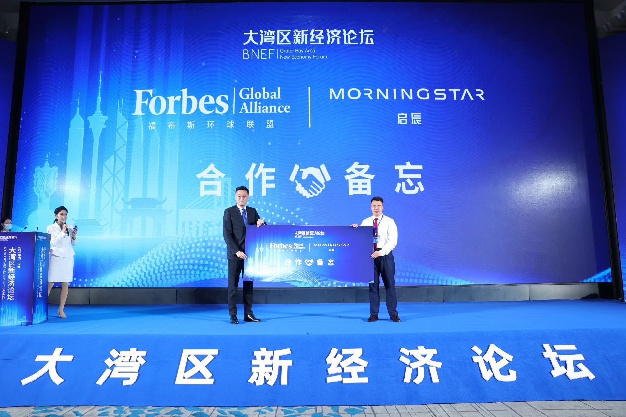 論壇現(xiàn)場(chǎng)啟動(dòng)福布斯環(huán)球聯(lián)盟和新經(jīng)濟(jì)論壇合作備忘儀式,大灣區(qū)新經(jīng)濟(jì)論壇發(fā)起人馬曉晨和福布斯環(huán)球聯(lián)盟會(huì)員發(fā)展部總監(jiān)郭雋祎Michael上臺(tái)攜手展示合作備忘,未來合作雙方將提攜并進(jìn),共同發(fā)展。