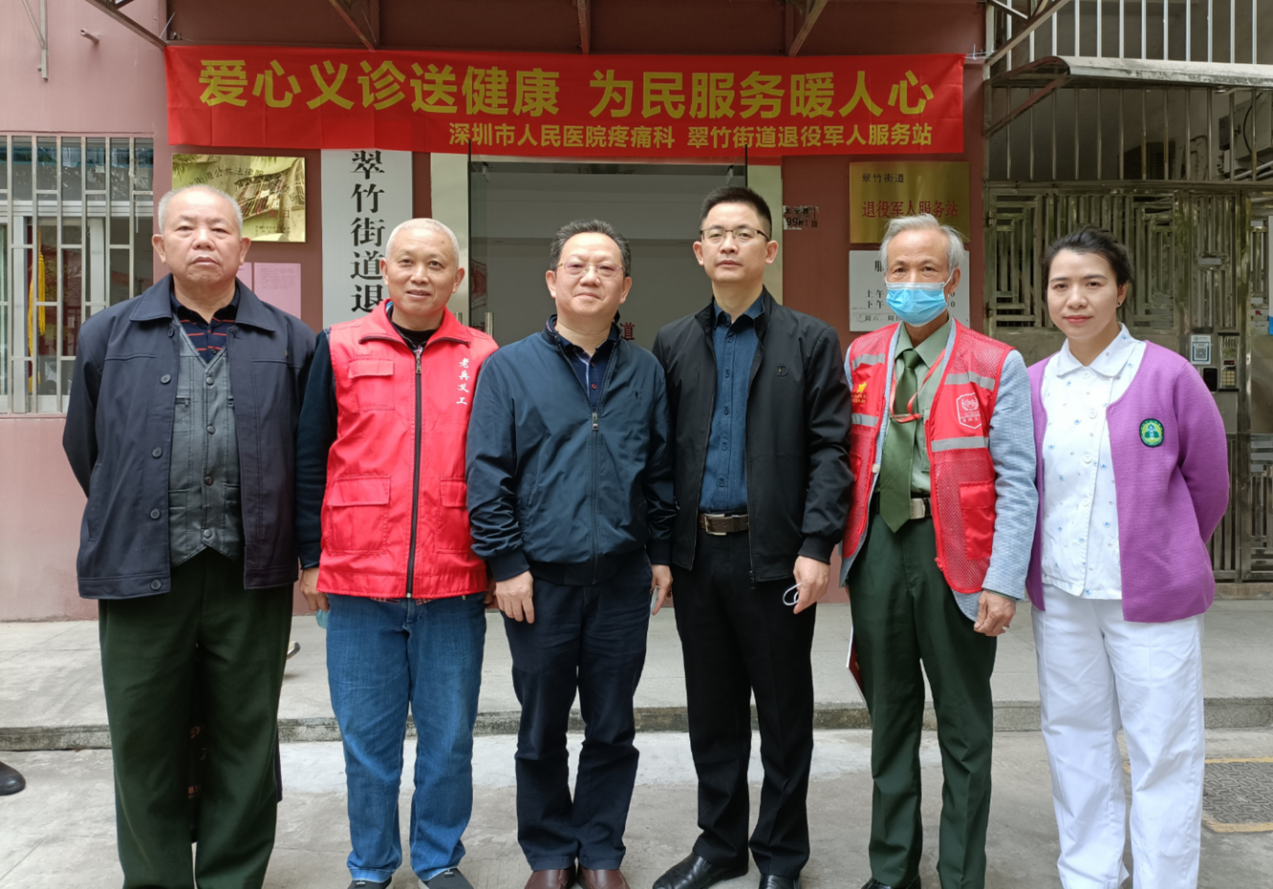 12月19日上午,深圳市人民醫(yī)院疼痛科11名專家與護士攜帶血壓計、血糖儀、聽診器、理療儀等儀器到街道退役軍人服務站開展“愛心義診送健康,為民服務暖人心”關愛退役軍人義診活動。為防范疫情風險,服務站將健康服務分區(qū)域并安排工作人員查驗健康碼、行程碼、測體溫,參與人員須佩戴口罩方能進入活動現(xiàn)場。在服務站門口通風處設置血糖與血壓測量處、專家醫(yī)生坐診處,在老兵活動室開展健康知識講座,在黨建活動室和老兵談心室開展身體理療服務。所有服務同時開展,退役軍人和居民自主決定參與順序,避免扎堆。