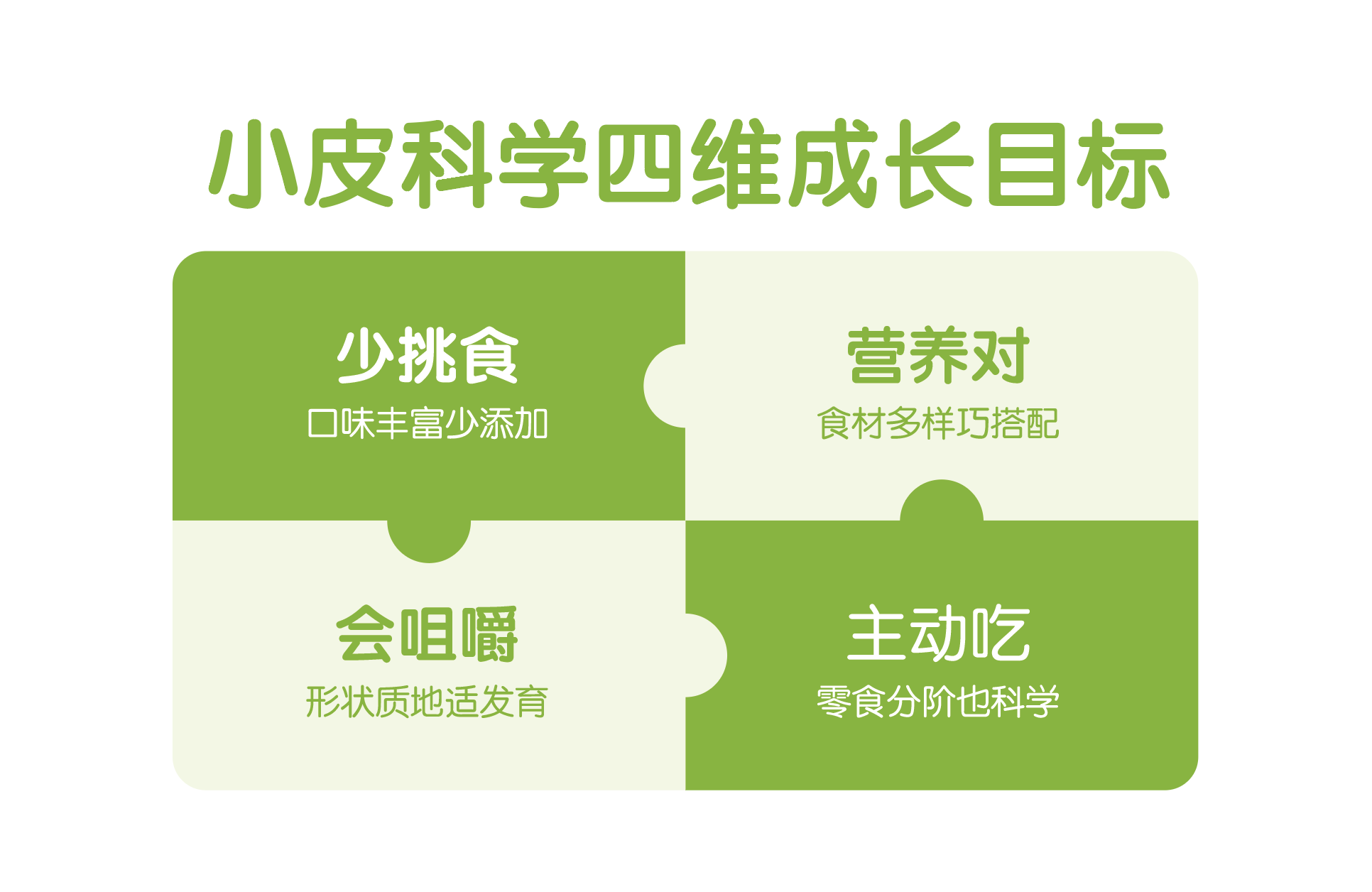 2017年,我國將“生命早期1000天營養(yǎng)健康行動(dòng)”列為國民營養(yǎng)計(jì)劃重大行動(dòng)之一,但相比孕產(chǎn)期與新生兒階段已覆蓋完善的營養(yǎng)指導(dǎo)來說,輔食階段的科學(xué)喂養(yǎng)關(guān)注程度與認(rèn)知教育還有待提升。在此背景下,小皮基于嚴(yán)謹(jǐn)?shù)目茖W(xué)研究提出《6-36月齡嬰幼兒四維科學(xué)喂養(yǎng)方案》,并通過中國食品科學(xué)技術(shù)學(xué)會(huì)權(quán)威論證,旨在幫助寶寶建立起“少挑食、營養(yǎng)對(duì)、會(huì)咀嚼、主動(dòng)吃”的健康飲食習(xí)慣。