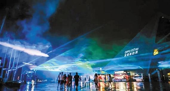 8月12日晚間,深圳歡樂(lè)海岸上演了一場(chǎng)浪漫極光秀,激光投射到云霧之上,營(yíng)造出人造極光這樣的奇特景觀。