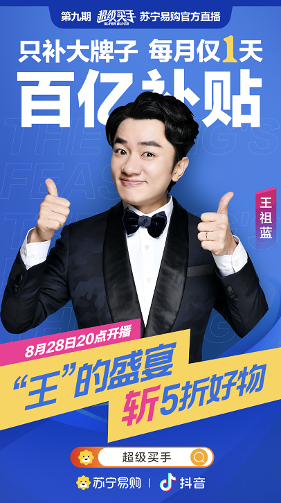 明日,王祖藍(lán)將做客蘇寧抖音“超級(jí)買手直播間”,所有帶貨商品均來自蘇寧易購。