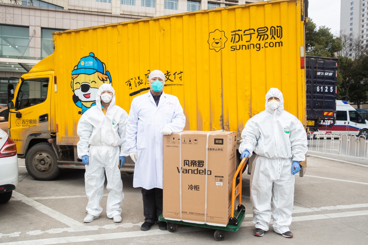 蘇寧大客戶在保障政企單位采購的同時(shí),在復(fù)工第一周為南方電網(wǎng)和南京市公安局捐贈(zèng)了酒精消毒棉片、免洗洗手液及次氯酸鈉消毒液等防疫物資。