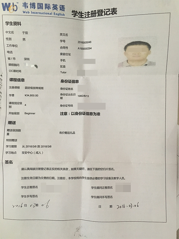 投訴對(duì)象:深圳韋博英語培訓(xùn)中心
