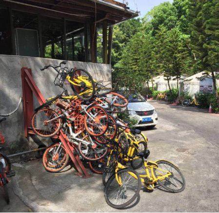 未開放的安托山公園內竟然藏有大量廢棄的共享單車。如此大量的廢棄共享單車,其來源究竟為何處?