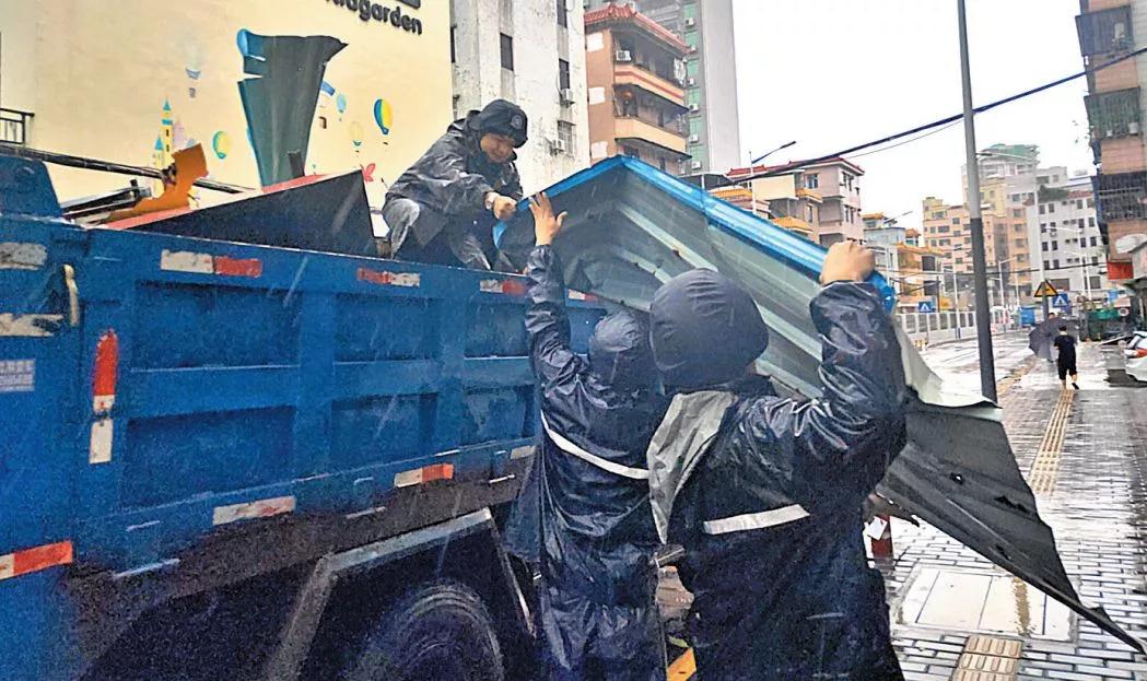 觀瀾工作人員清理脫落的鐵皮