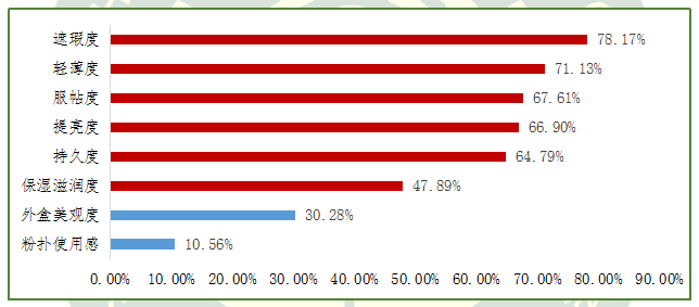 圖6.關(guān)注氣墊粉底使用性能指標(biāo)的消費(fèi)者人數(shù)占比