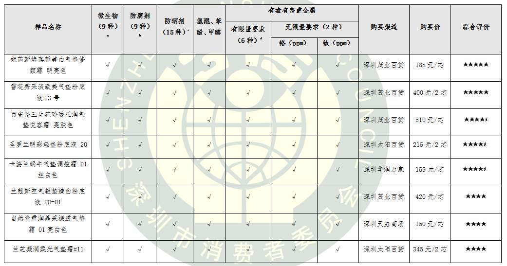為給消費(fèi)者提供科學(xué)合理的消費(fèi)指引,深圳市消費(fèi)者委員會聯(lián)合福田區(qū)消費(fèi)者委員會、寶安區(qū)消費(fèi)者委員會委托深圳市品質(zhì)消費(fèi)研究院開展氣墊粉底比較試驗(yàn)。本次比較試驗(yàn)委托第三方權(quán)威檢測機(jī)構(gòu)進(jìn)行檢測,對國內(nèi)外8個知名品牌氣墊粉底的安全性和感官性進(jìn)行了比拼。