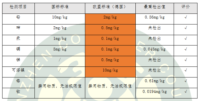 檢測結(jié)果顯示:對于有限量要求的重金屬,8款氣墊粉底均滿足國標(biāo)和歐盟最嚴(yán)格的限值要求;對于沒有限量要求的重金屬鉻和釹,也滿足在正常的,或合理預(yù)見的使用條件下不對人會體造成危害。