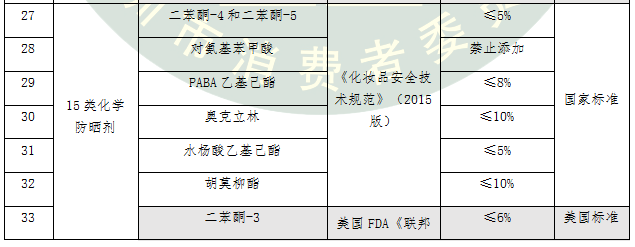 表4.15類化學(xué)防曬劑標(biāo)準(zhǔn)要求比對及評價結(jié)果