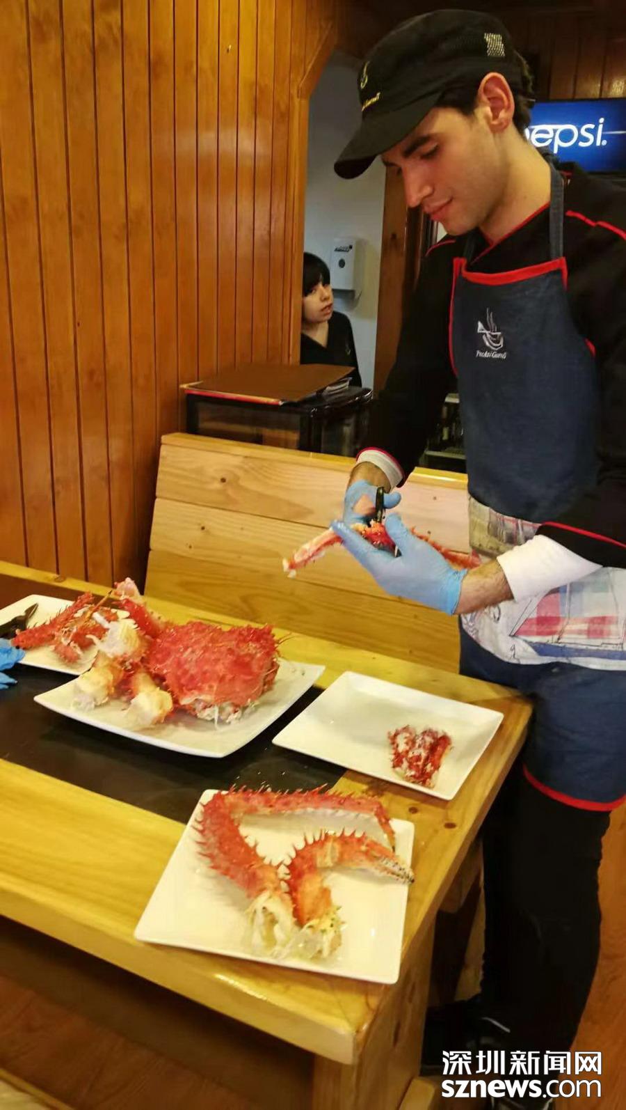 深圳新聞網(wǎng)訊 蜘蛛蟹(又名皇帝蟹)只產(chǎn)于南北兩極冰冷的海洋中,因?yàn)榘藯l腿特長(zhǎng),外觀(guān)形似蜘蛛,而且觸角也比普通螃蟹多,所以被稱(chēng)為蜘蛛蟹,大個(gè)的重量可達(dá)5公斤以上。智利政府規(guī)定,小于1.5公斤的不許捕撈。