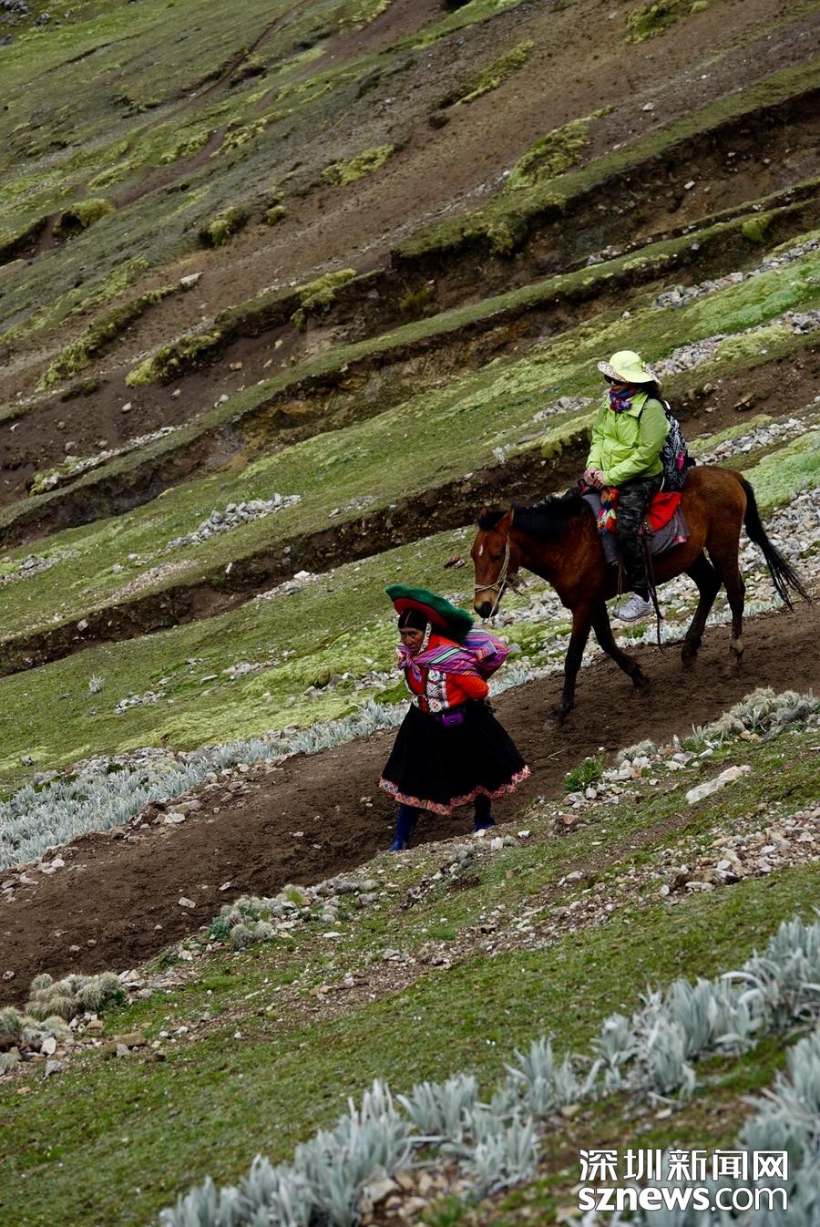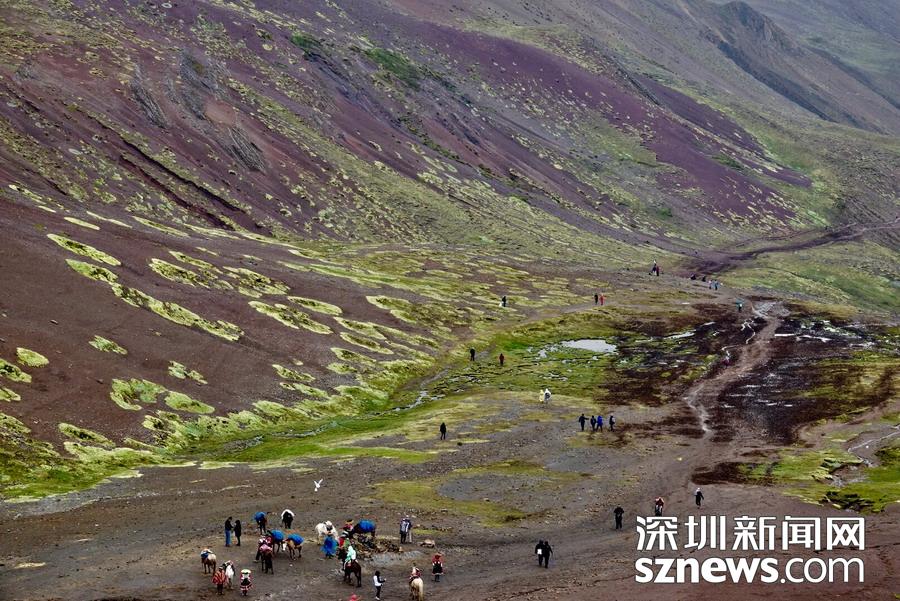 深圳新聞網(wǎng)訊 彩虹山被當(dāng)?shù)厝朔Q為維昆尼卡。深藏于秘魯庫斯科古城附近的安第斯山脈之中,多年來它一直隱藏在冰雪之下,據(jù)說是因為溫室效應(yīng),雪線升高露出真容,才于2016年被發(fā)現(xiàn),并迅速成為世界知名景點。這里可以觀賞到的還有冰川、高山草甸、羊駝以及當(dāng)?shù)厣贁?shù)民族的風(fēng)情。李仁奇攝