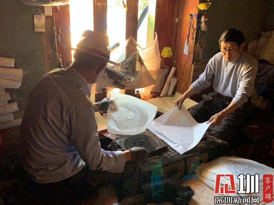 德格印經(jīng)院的印刷工藝大體可分裁紙、顏料加工、印刷、裝訂四個流程。又可細(xì)分裁紙、泡紙、兌墨、研磨、兌制朱砂、取版、印刷、晾曬、洗版、歸庫、分頁、核對、裝訂、打磨、刷色邊、包裝等十余道工序。李仁奇攝