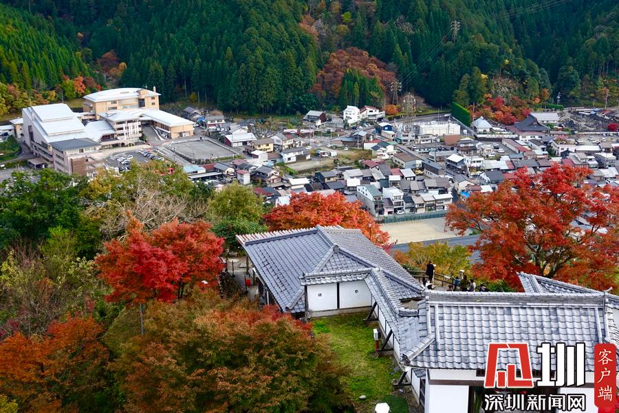在明媚的陽(yáng)光下,日本風(fēng)格民居掩映在紅葉之中,房前屋后的小景也很漂亮。李仁奇攝